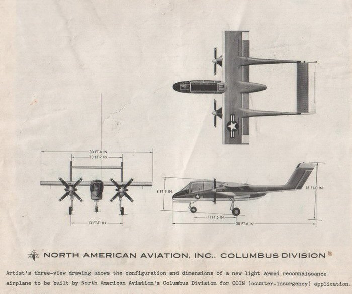 North American Aviation's Artist Conception Of A Light Armed Reconnaisance (Counter Insurgency) Aircraft That Evolved Into The OV-10 'Bronco'.