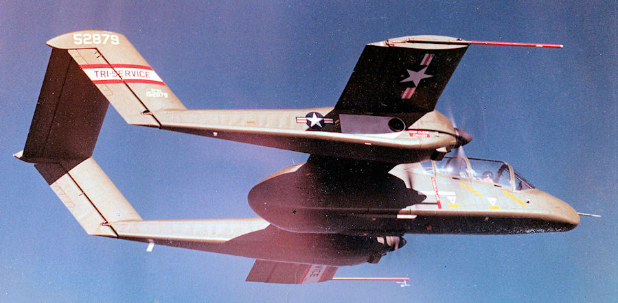 152885 (MSN 300-7) First listed with All Service Evaluationon at NAS Patuzent River, Maryland on June 18, 1967. Sent to NPRC R&T in Columbus, Ohio on November 14, 1967. Prototype twin-engined, twin boom, battlefield observation aircraft built for the USMC.