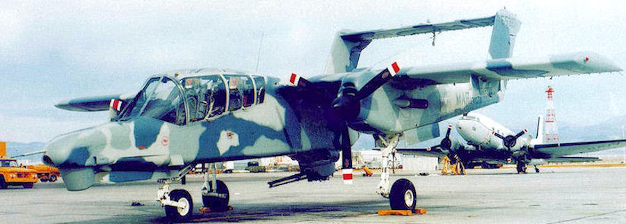 The aircraft were to be used in the civil war being waged in the south by the Polisariso insurgents. During the operation of the aircraft one crashed and was destroyed, and another made a wheels up landing but was scrapped as repair was not within their capability. With the end of the war the aircraft were used for border and coast patrol, flying out of the Kenitra Air Base. In June of 1991 the OV-10A made their last flight to Meknes air base where they were put into storage.